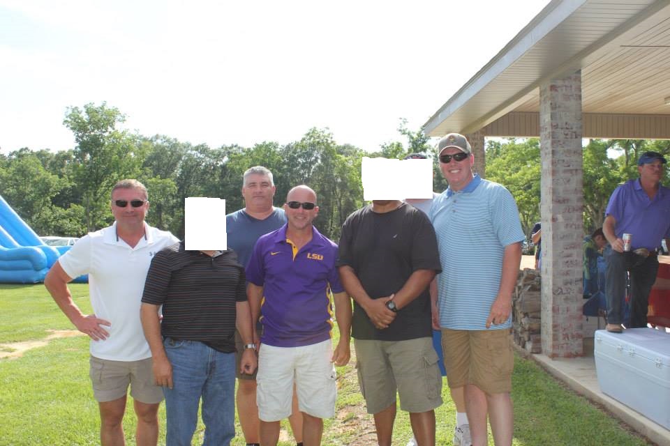 The photo above is reportedly from the retirement party for Jacobsen held at Picou’s home. From left to right, Captain Chris Guillory, LT Paul Brady, Trooper Ronald Picou, and Retired LT Jim Jacobsen. The two in dark shirts are unidentified and their faces have been blocked out.