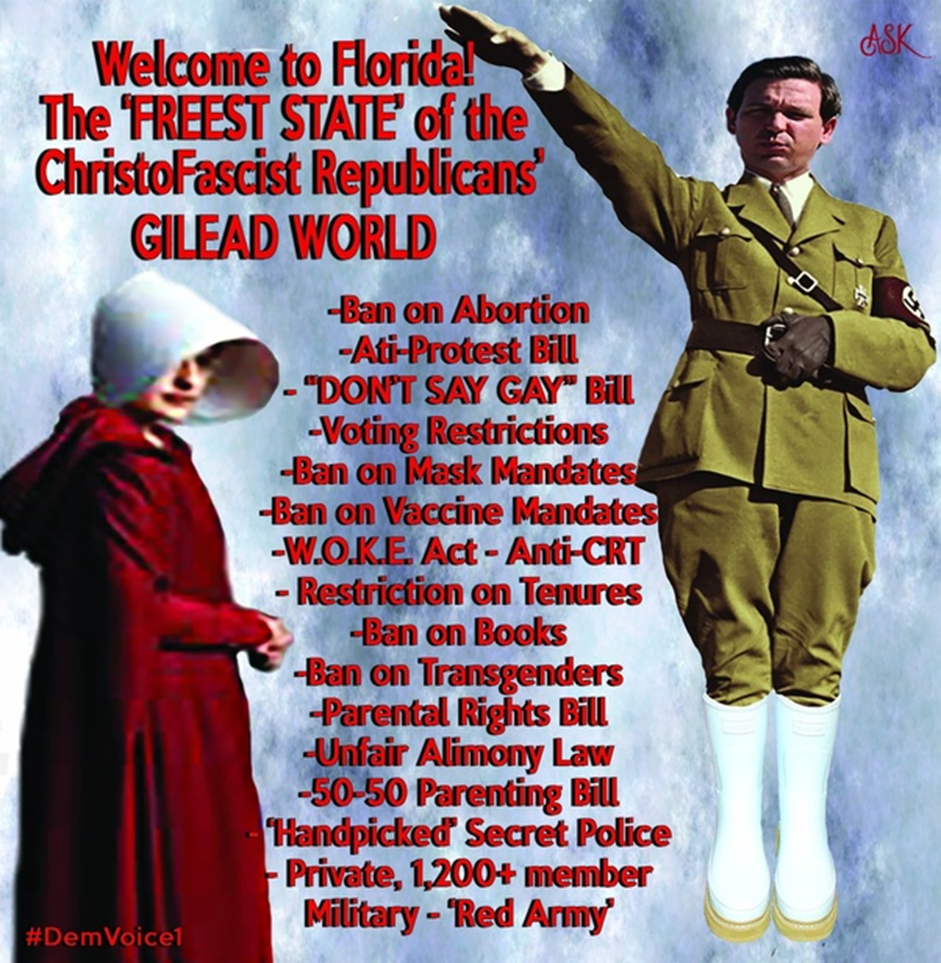 As much as I detested Trump for his four-year s**t show, I am absolutely scared to death of a DeSantis presidency. Where Trump was largely an orange-tinged clown-like buffoon, DeSantis is a true danger to this country. Simply put, he is the personification of evil – evil to the rights of women, minorities, gays, educators, the news media, to freedom itself.