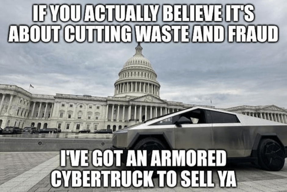 So, I reiterate: the goal is not to eradicate waste, it’s to establish an oligarchy and you and I aren’t invited.