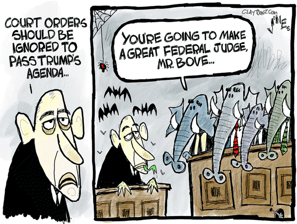 And how is it that whistleblower documents, filed with the U.S. Justice Department was last May somehow got overlooked? The answer to that, of course, is that it’s no longer the U.S. Justice Department, it’s the Trump Justice Department. It would be interesting to hear Kennedy and Cassidy explain how they’ve been so willing to look the other way on that and so many other ethical questions that have arisen in the six months Trumps reassumed the reins. The Bove confirmation is just the latest.