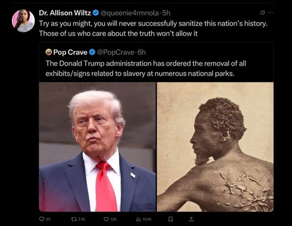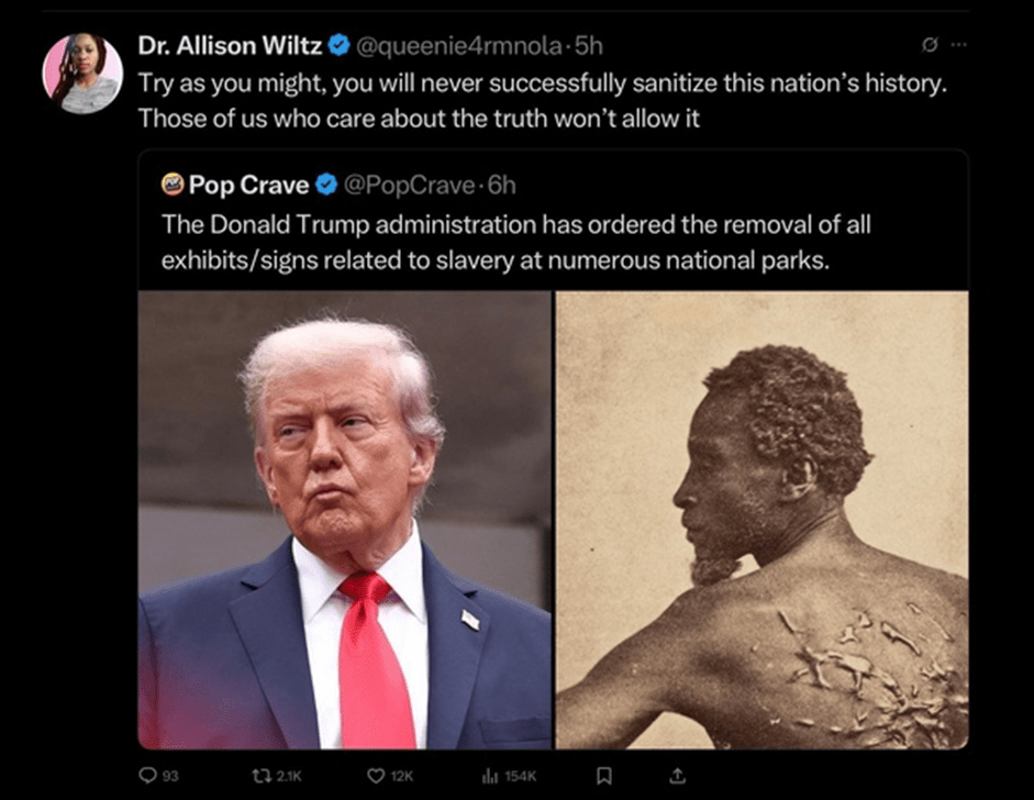 But now, Donald Trump, in his efforts to whitewash American history to reflect nothing but sunshine and roses, has ordered the REMOVAL of not only that photograph, but all information about slavery not just at the Smithsonian, but at all the country’s national parks.