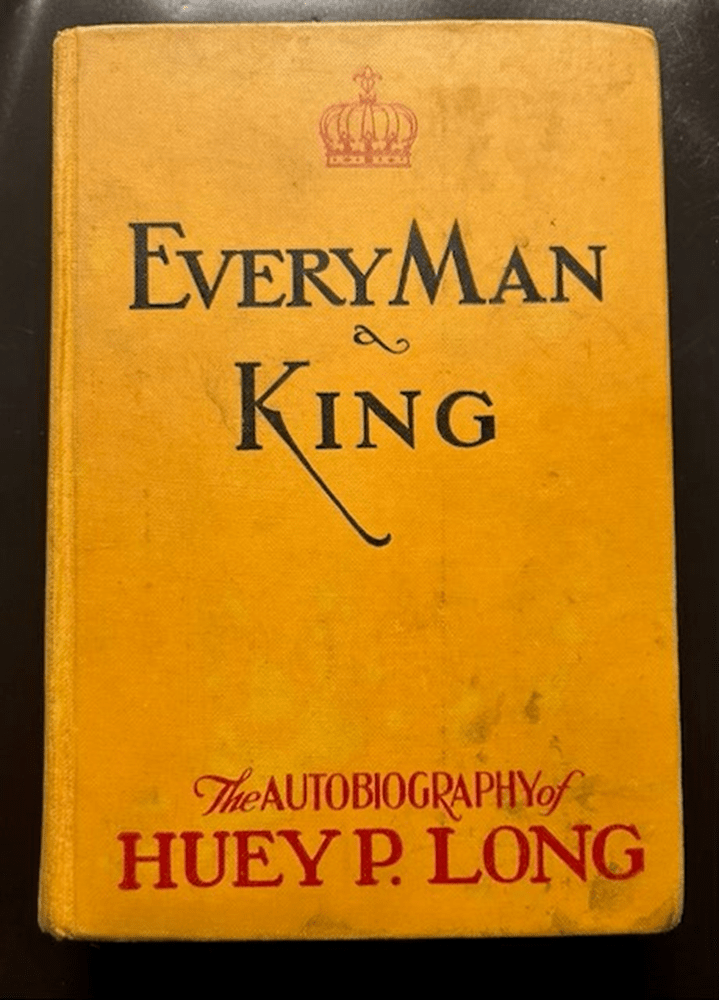 As in the previous two fundraisers, the one making the largest single contribution will win a first-edition copy of Huey Long’s autobiography, Every Man a King.
