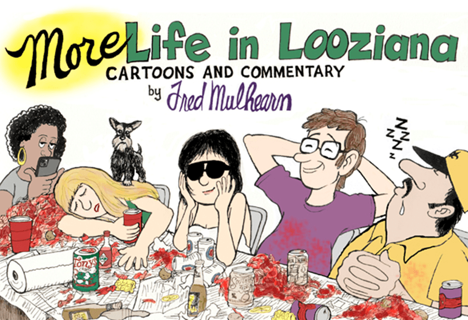- “Fred Mulhearn’s cartoons have entertained several generations of Louisianians. He’s a brilliant and gifted native son with the keen eye of an outsider for seeing clearly the quirks and foibles of his home state. And we have a lot of quirks! In this new collection of delightful cartoons, Fred will make you laugh–and probably even think.” — Robert “Bob” Mann, holder of the Manship Chair at the Manship School of Mass Communication at LSU for 18 years, and author of ten books including Kingfish U: Huey Long and LSU and You Are My Sunshine: Jimmie Davis and the Biography of a Song.
