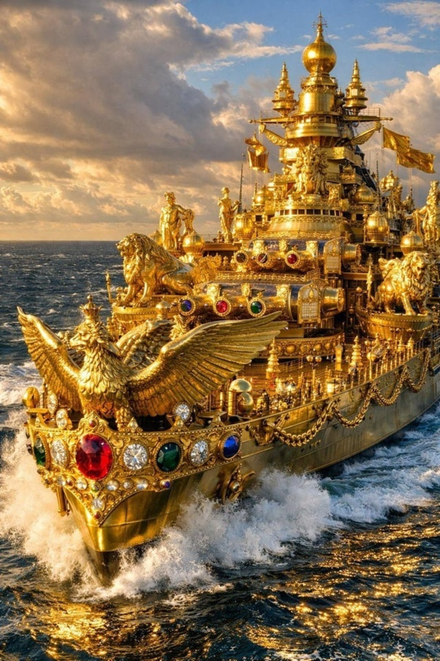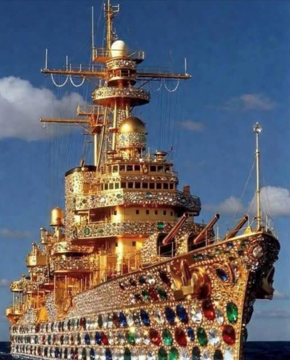 The Crown Jewel Gold Standard, with precious jewels inlaid on a basic golden deck and hull: