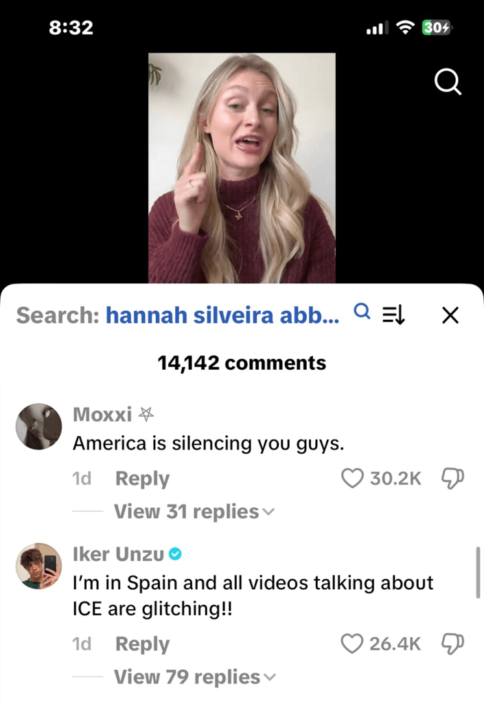 - “I’m in Spain and all videos talking about ICE are glitching!!”