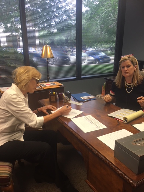Mildred “Mimi” Methvin, left, formally qualifies to run for U.S. Representative from Louisiana’s 3rd Congressional District last Wednesday. Looking on is Meg Casper of the Louisiana Secretary of State’s office.