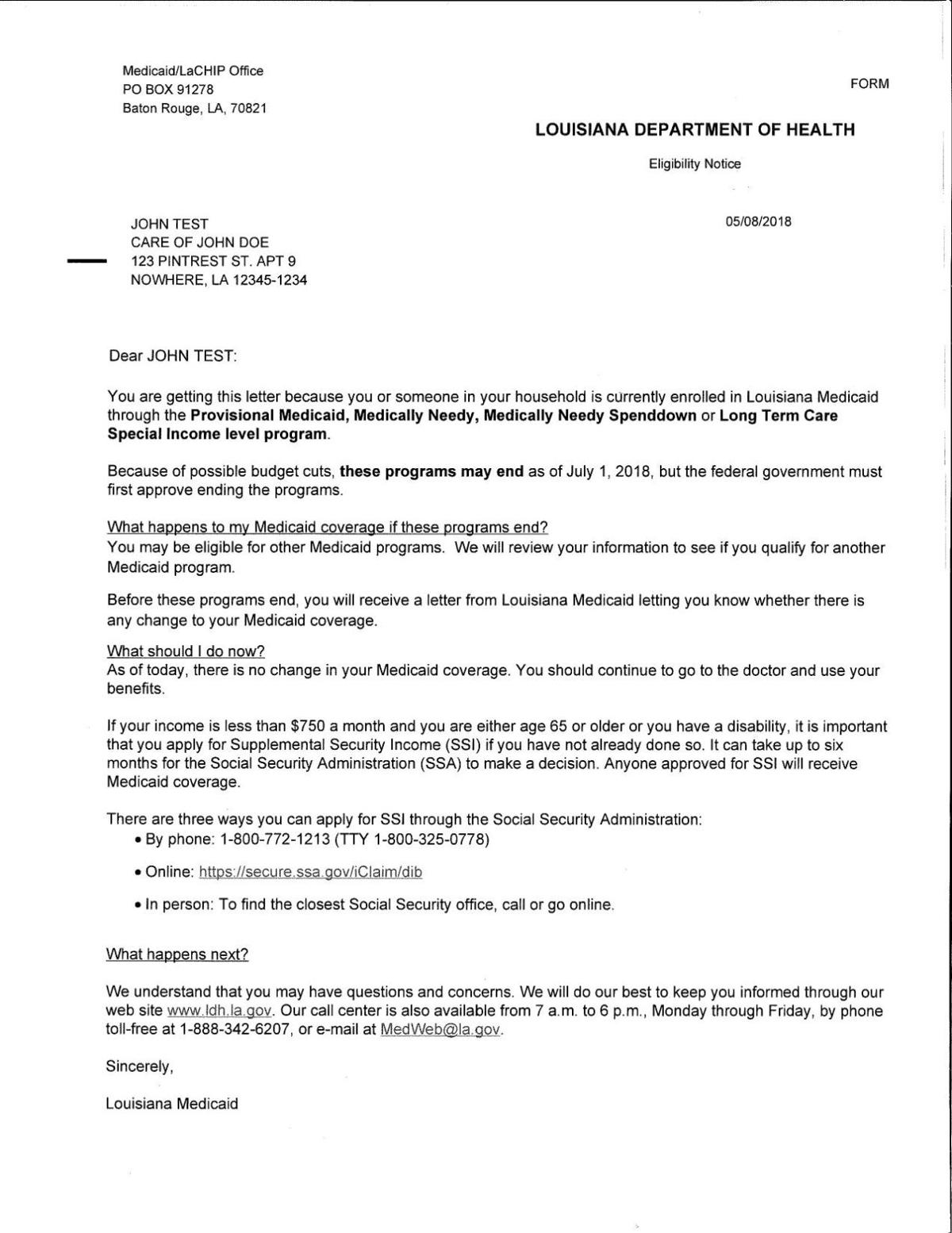 Ditto for Rep. Lance Harris (R-Alexandria), chairman of the House Republican Delegation, who called the letter an “unnecessary political scare tactic done to intimidate and frighten the most vulnerable people into believing they will be kicked out onto the streets if the governor doesn’t get everything he wants in the form of revenue.”