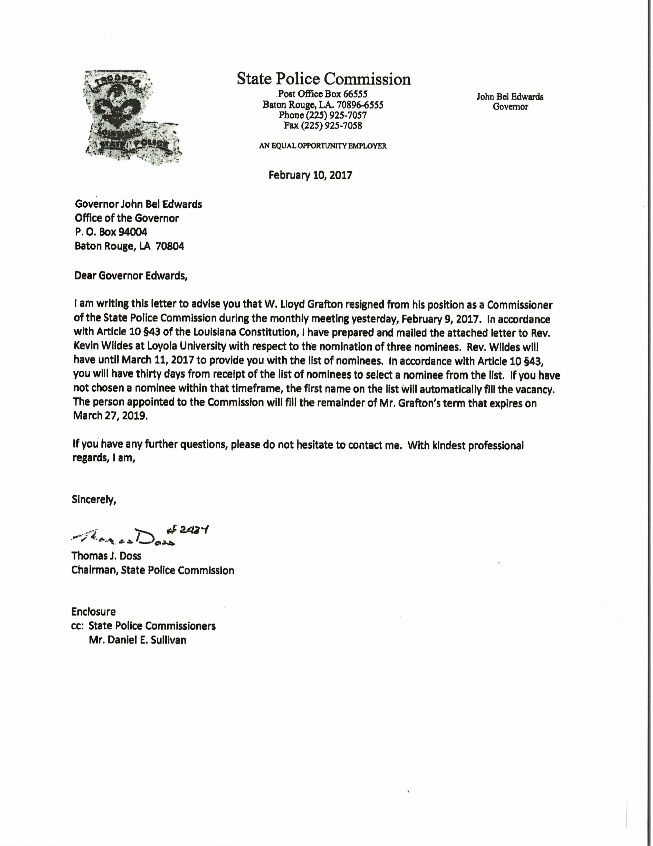 Miller is a member of the Retirement Board and President of the Central States Troopers Coalition of Louisiana, Inc.