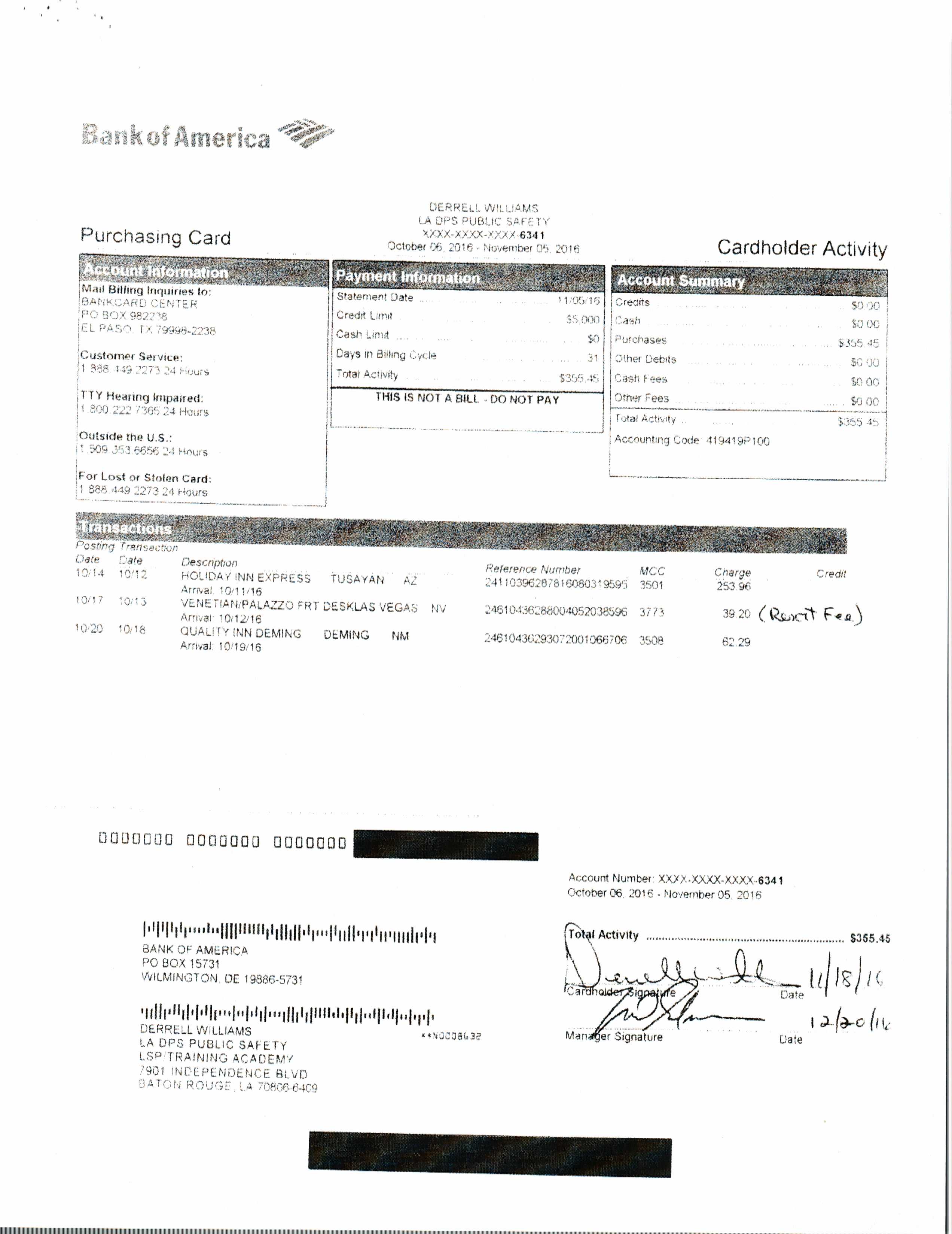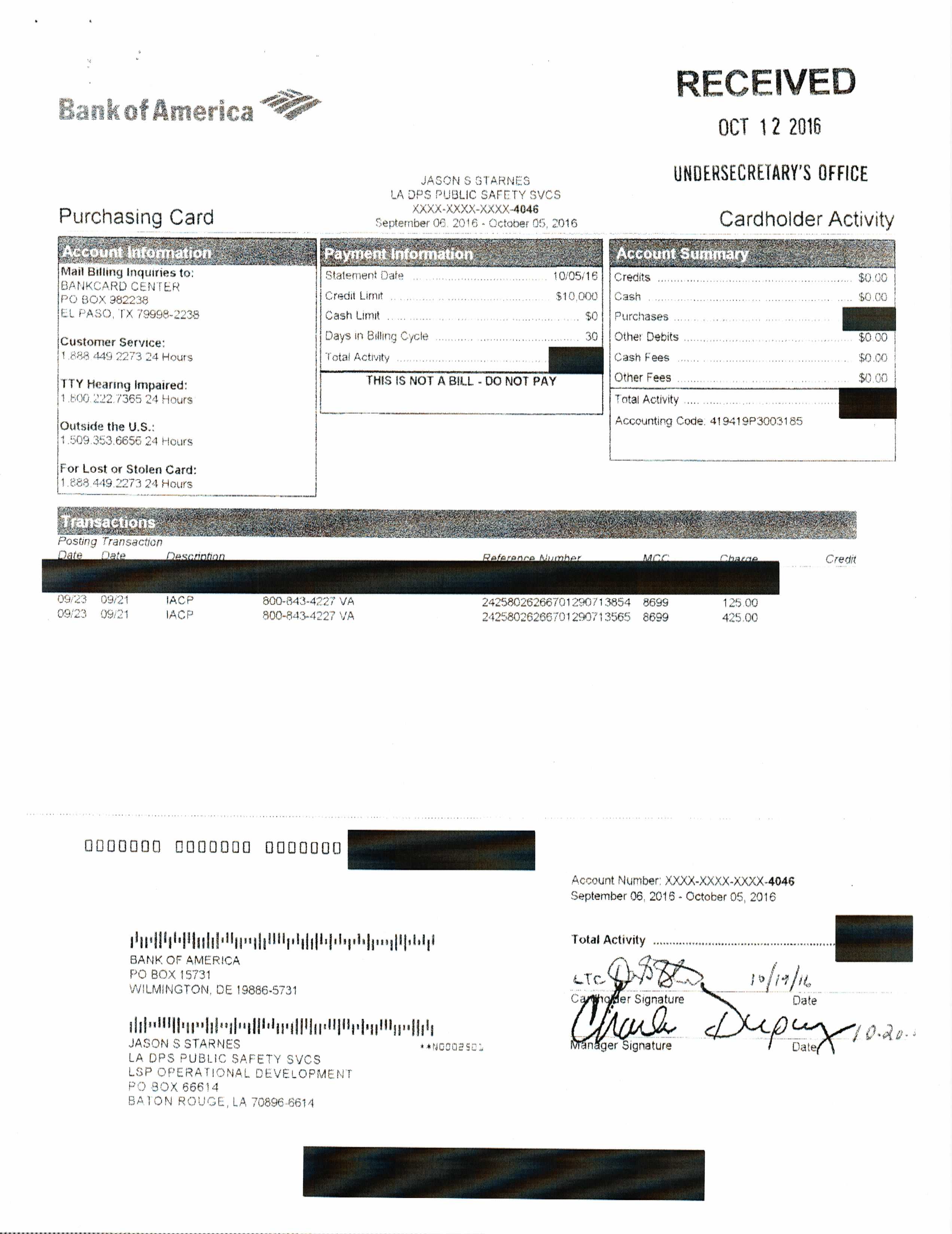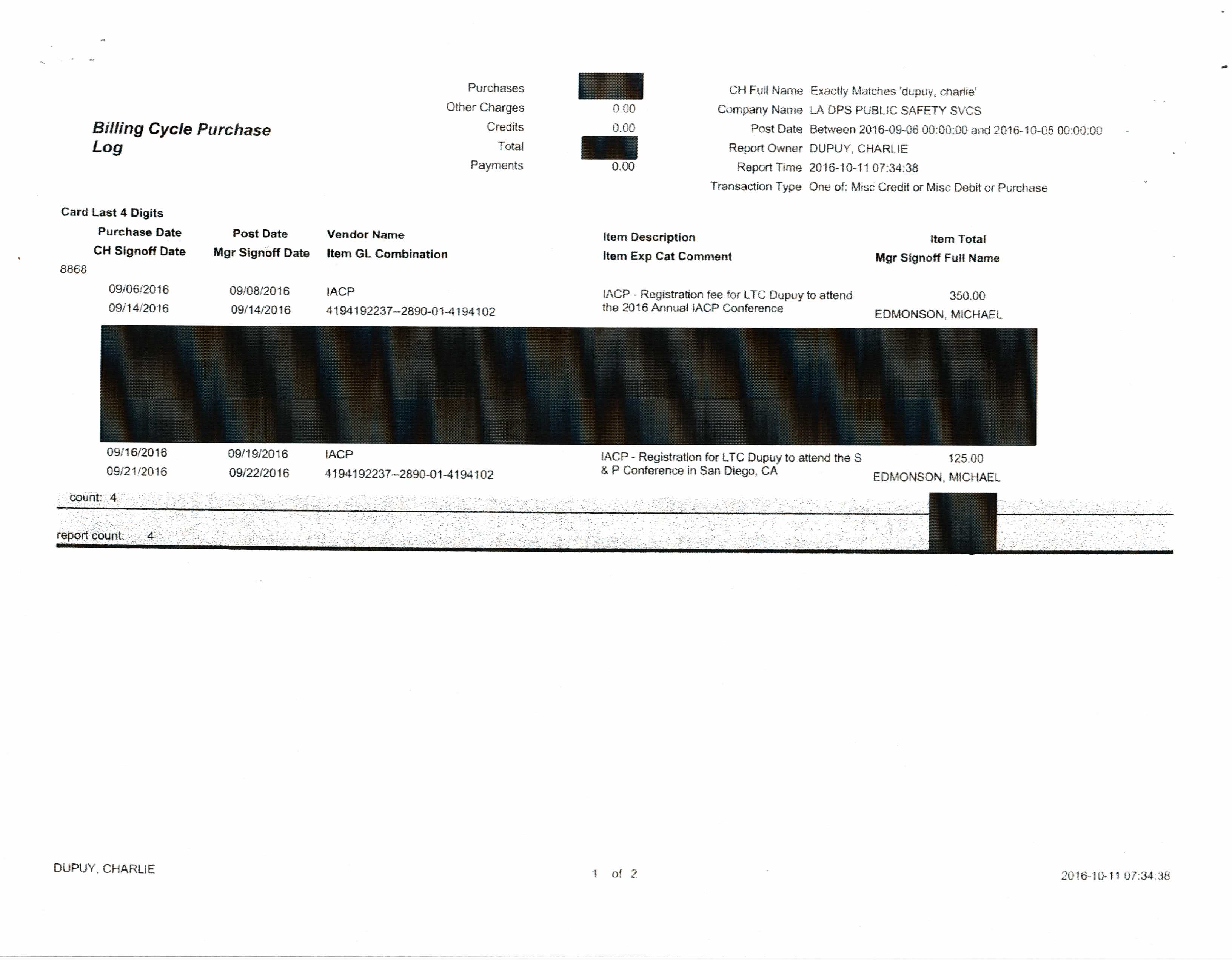 And remember, that $71,720 doesn’t include airfare, lodging and meals for Paul Edmonson since LSP failed to include him on the list of individuals who traveled to San Diego. Moreover, LSP initially provided expense records that redacted purchase amounts charged to the state LaCarte cards but later, pursuant to LouisianaVoice’s follow-up request, provided copies that were not redacted. But there were still no itemized receipts provided that showed what those purchases were.