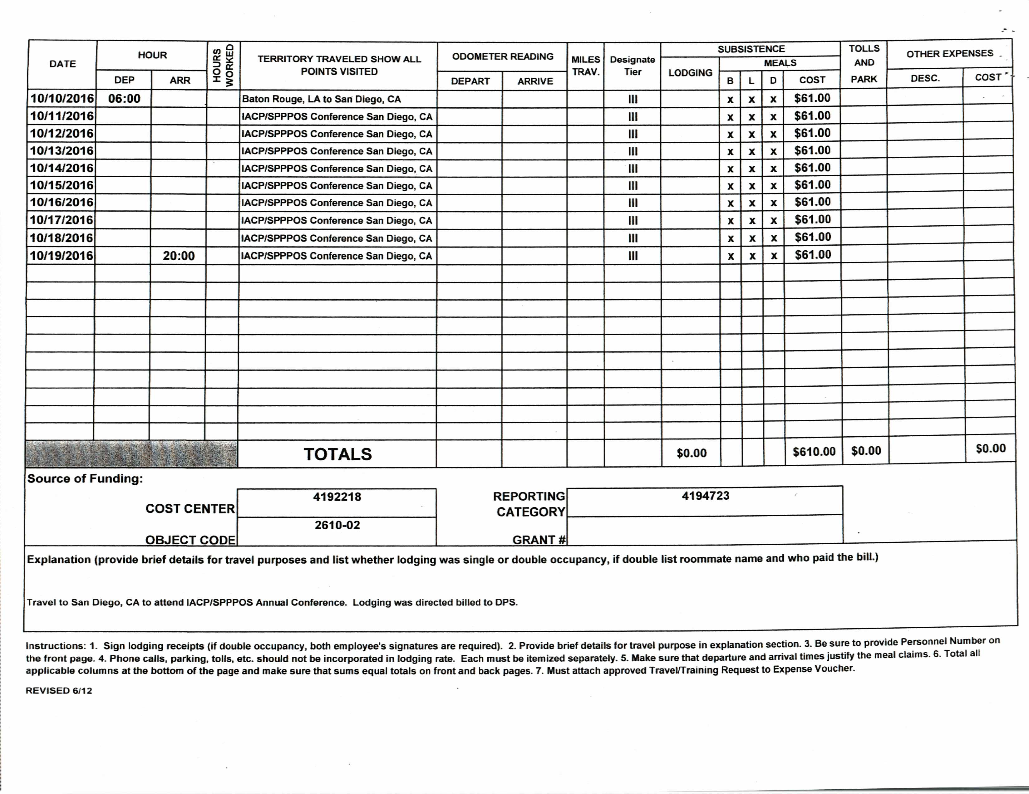 The decision to have LSP pay the salaries of such a large group of attendees, as well as travel, lodging, meal and conference registration expenses via state LaCarte credit cards, seems questionable enough. But the justification of having four troopers—Derrell Williams, Rodney Hyatt, Thurman Miller and Alexandr Nezgodinsky—drive a state vehicle from Baton Rouge to San Diego (with an overnight stopover in an expensive Las Vegas casino hotel)—was the most puzzling.
